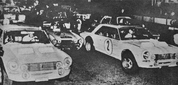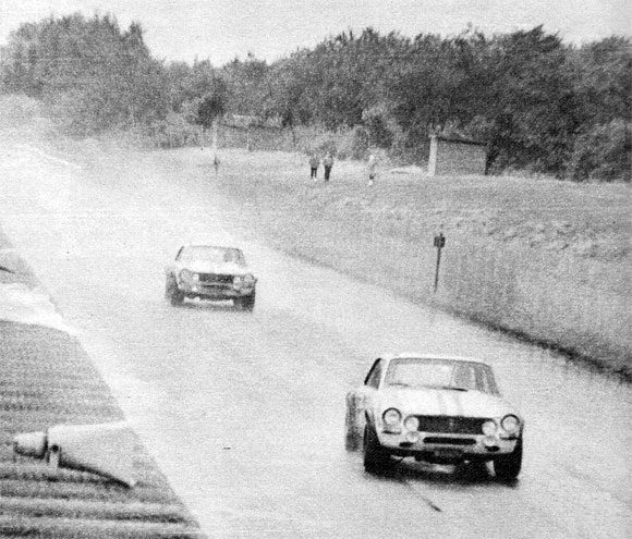 Lancia HF que hicieron 14m40s bajo la lluvia, dos Ford Escort -uno grupo