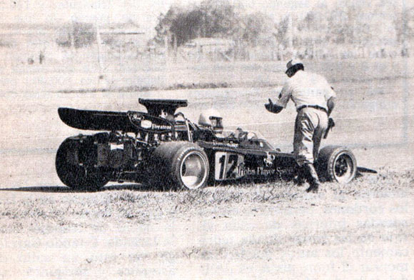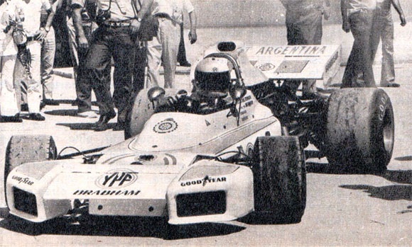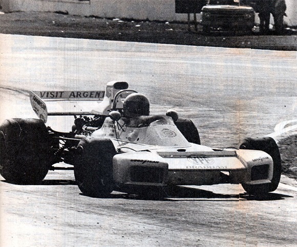 Carlos Reutemann, brillante debut en el equipo Brabham; el mejor en clasificación y atrasado el domingo por un problema de gomas.