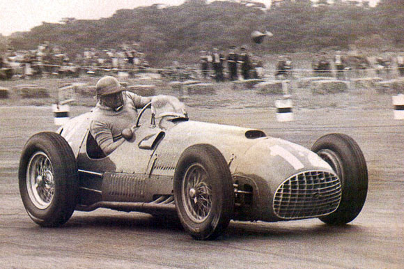"Antes del GP de Inglaterra en Silverstone, se había Corrido el de Francia en Reims. Esa carrera, la había ganado Fangio con un Alfa después de una batalla tremenda y durante la cual muchos autos quedaron al margen. En esa ocasión, Fangio, que había tenido problemas con su auto, se subió al de Sanesi y a mí me hicieron detener para que mi auto lo manejara Ascari. Resumiendo, debimos dividir con Ascari los puntos obtenidos con nuestro segundo lugar".