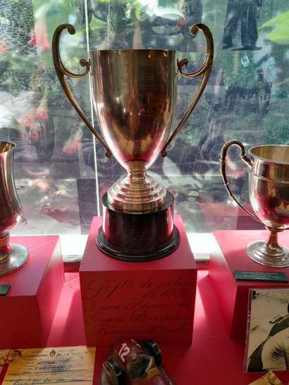 "El factor suerte me ayudó mucho, y yo creo en ella, en Inglaterra y no precisamente en Silverstone, corrí alrededor de diez carreras y creo que gané ocho incluyendo los GP del 51 y '54". "Había dos o tres curvas en las cuales se podía establecer algún tipo de diferencia: la anterior a la última, Abbey, que era muy rápida; Woodcote, que era algo más lenta, y la zona sinuosa que comprende Maggotts, Becketts y Chapel. En todas ellas, en los dos años que gané, mis autos andaban muy bien".