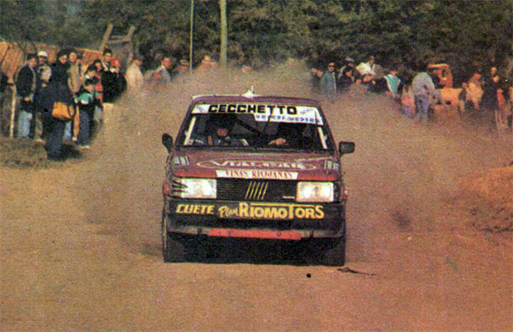 Jorge Bescham y "Pepe" García dando espectáculo con su Fiat Regatta 85. Foto Revista Corsa