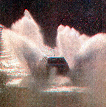Reuteman - Del Buono con el muletto Lancia con el que (probándolo para Corsa) recorría la ruta previo al paso de los autos del team. Aquí haciendo un ensayo nocturno en las cercanías de Carlos Paz. Foto Revista Corsa
